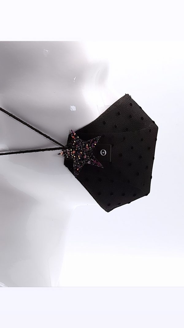 Pin de estrella Glitter Negra y Protector de Plumeti Negro con base de TNT, material Homologado.