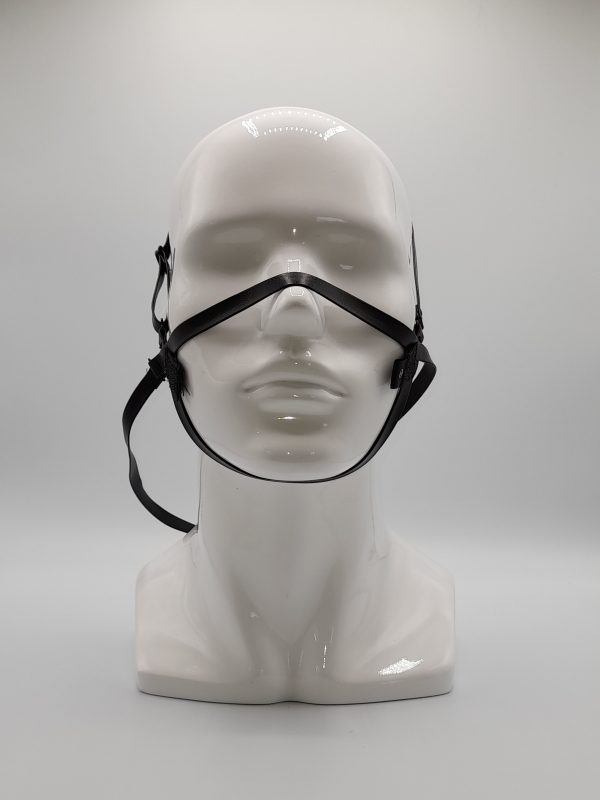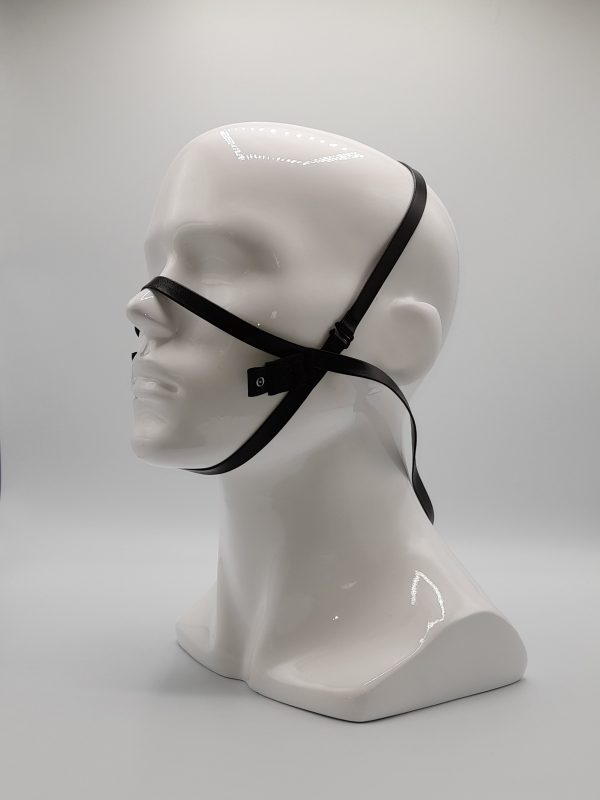 Bozal Ecopiel Negro contorno, Arnés superior desmontable incluye sujeción de oreja con elástico quirúrgico Negro, correa incorporada.