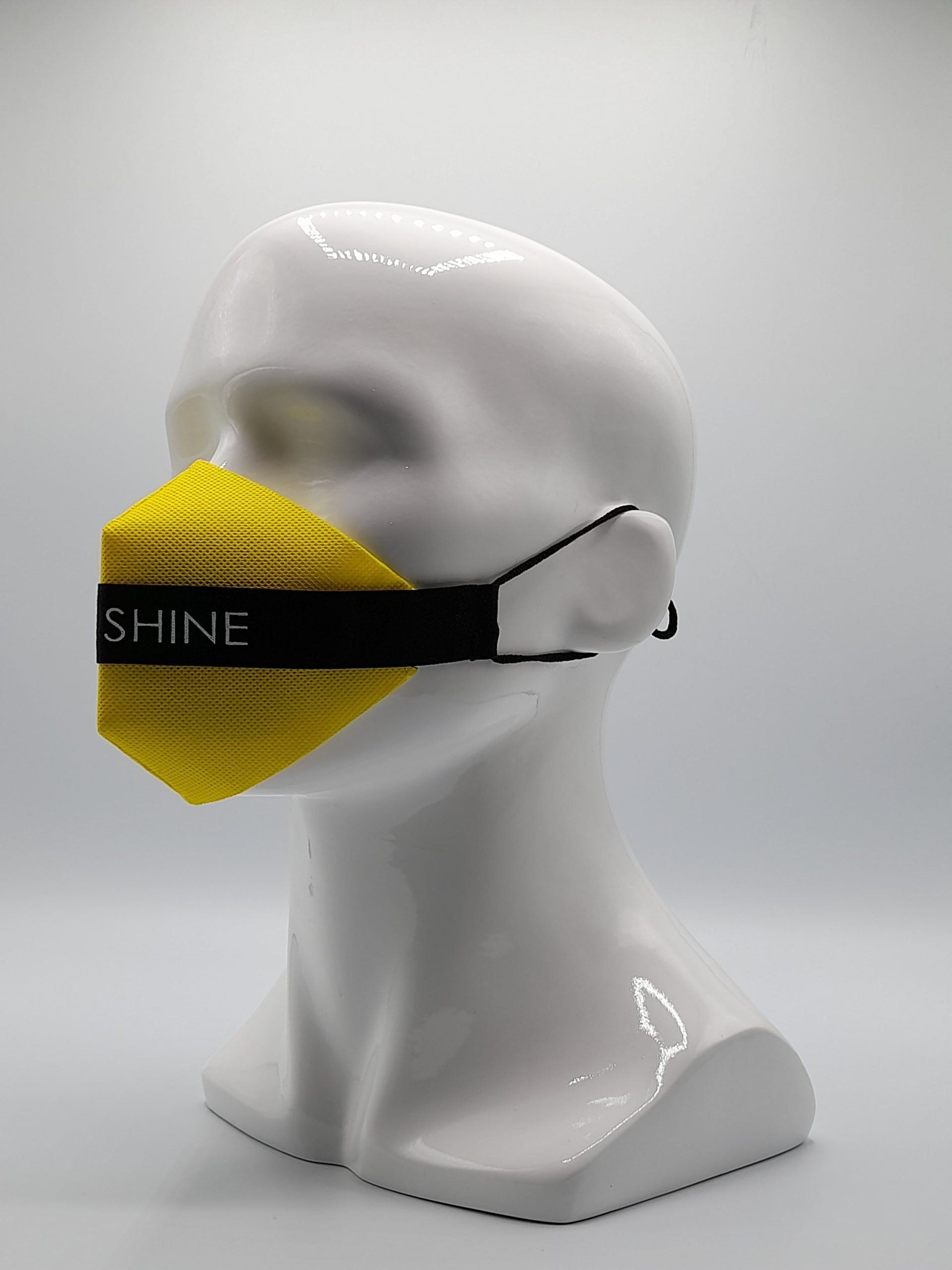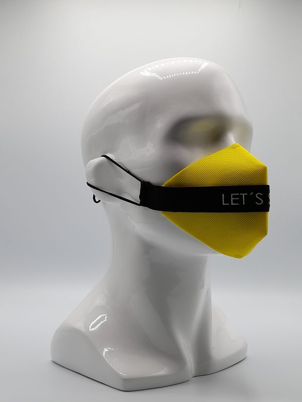 Mascarilla de Diseño cinta Negra LET´S Shine, sujeción de orejas con elástico quirúrgico. Protector intercambiable de TNT 100 gr. doble capa color Amarillo.