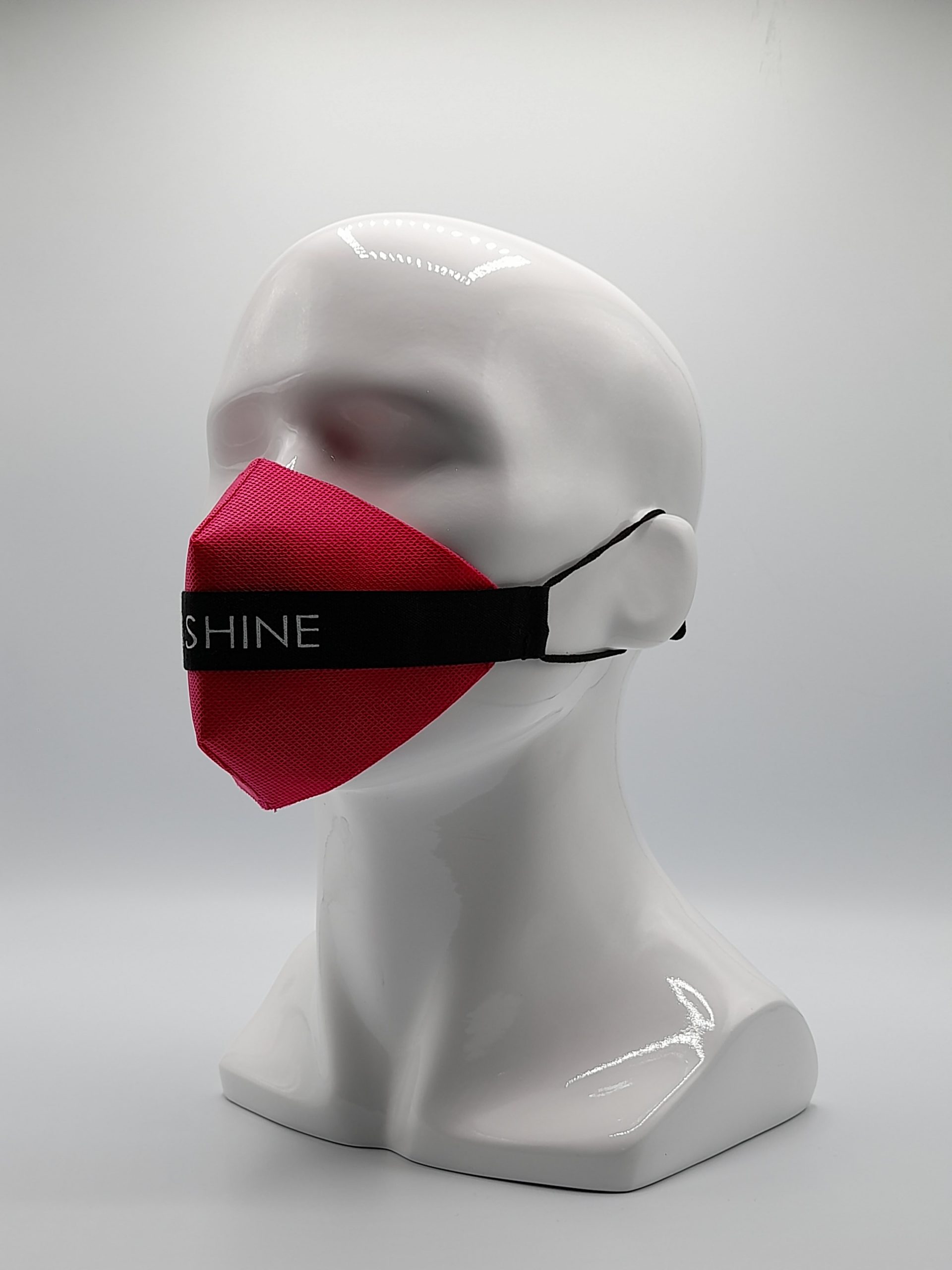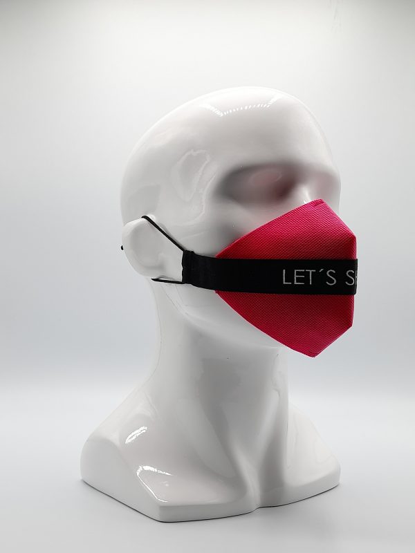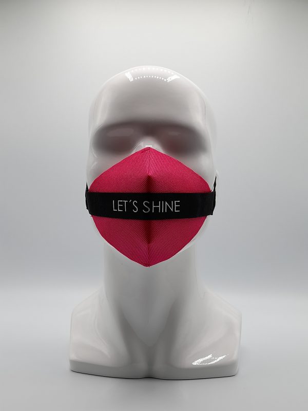 Mascarilla de Diseño cinta Negra LET´S Shine, sujeción de orejas con elástico quirúrgico. Protector intercambiable de TNT 100 gr. doble capa color Fucsia.