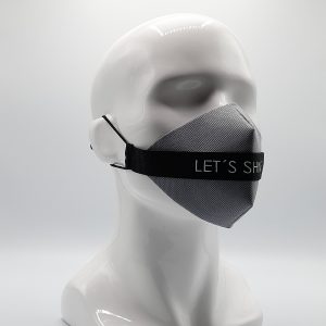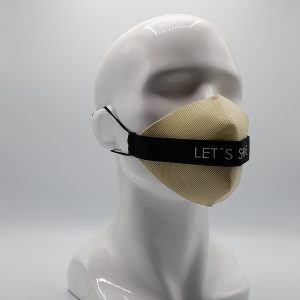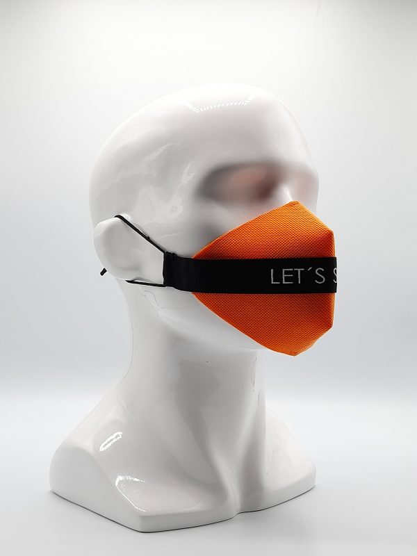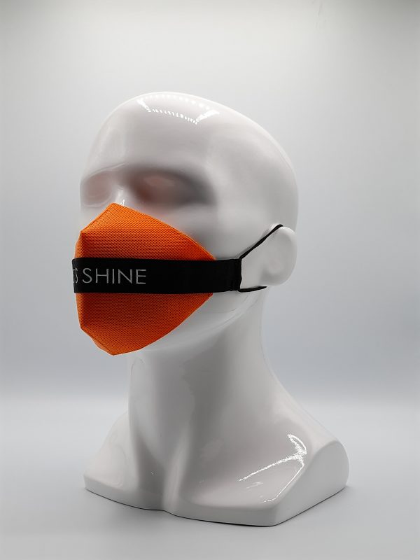 Mascarilla de Diseño cinta Negra LET´S Shine, sujeción de orejas con elástico quirúrgico. Protector intercambiable de TNT 100 gr. doble capa color Naranja
