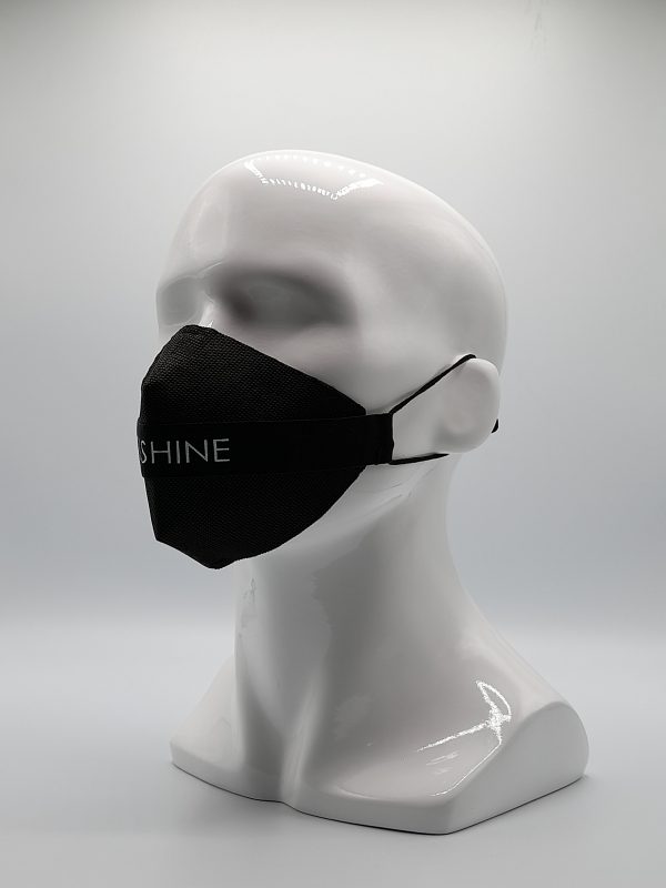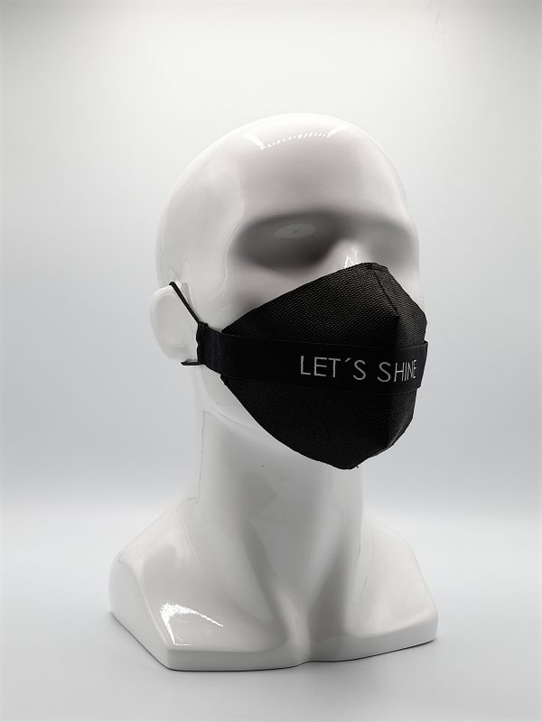 Mascarilla de Diseño cinta Negra LET´S Shine, sujeción de orejas con elástico quirúrgico.Protector intercambiable de TNT 100 gr. doble capa color Negro.