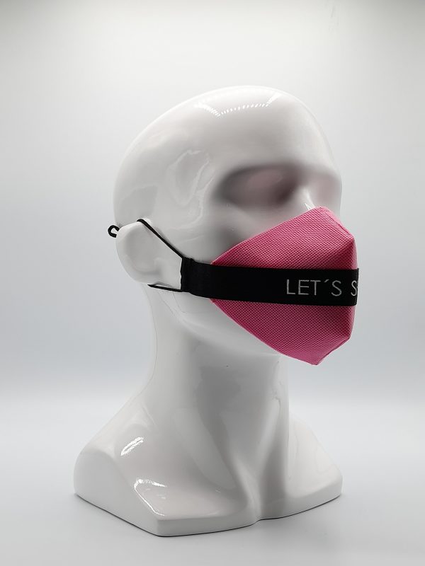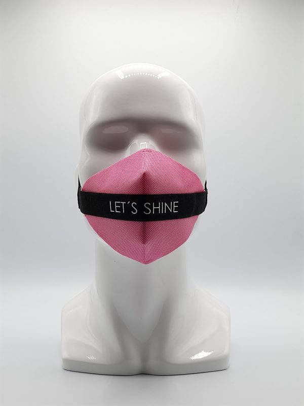 Mascarilla de Diseño cinta Negra LET´S Shine, sujeción de orejas con elástico quirúrgico.Protector intercambiable de TNT 100 gr. doble capa color Rosa.