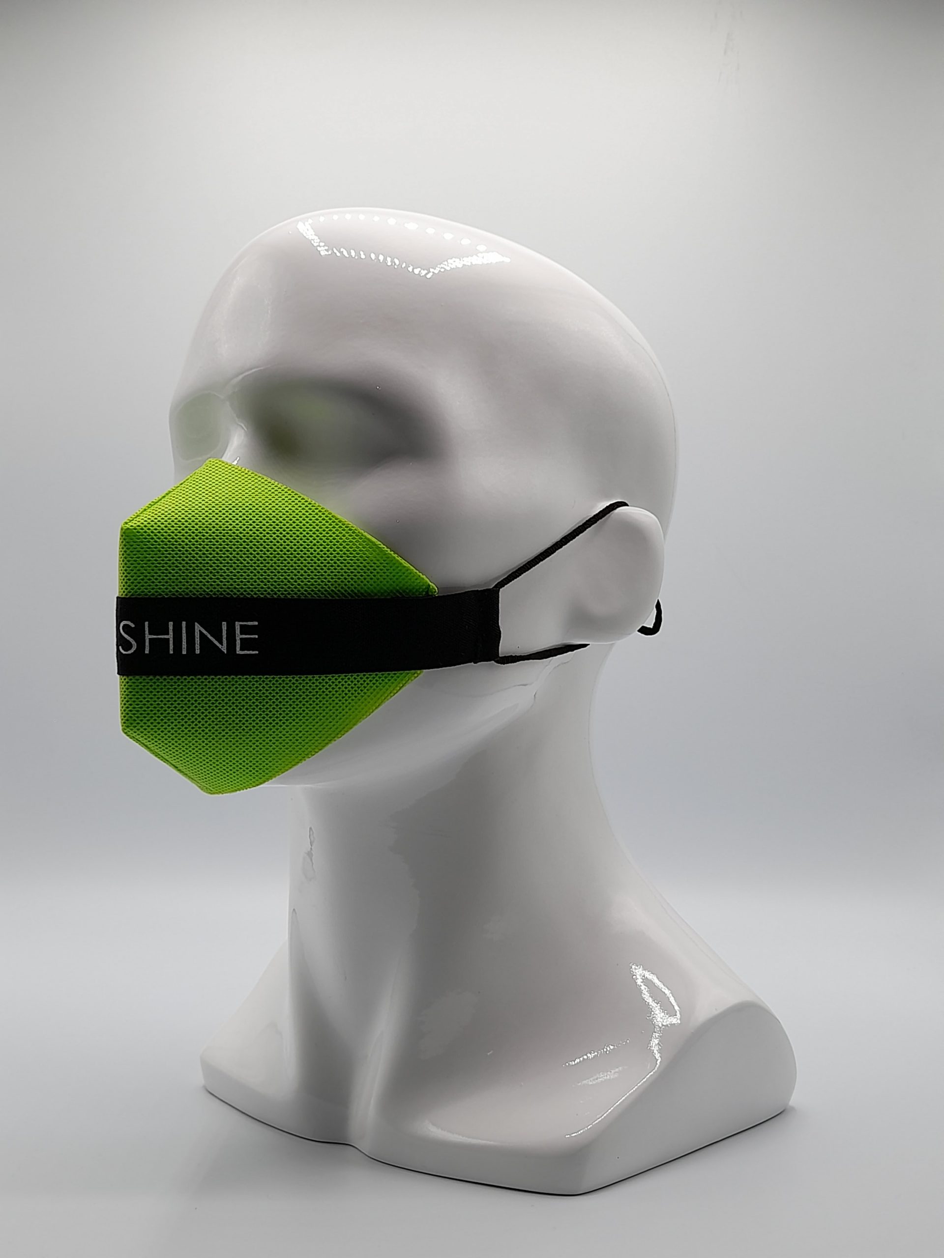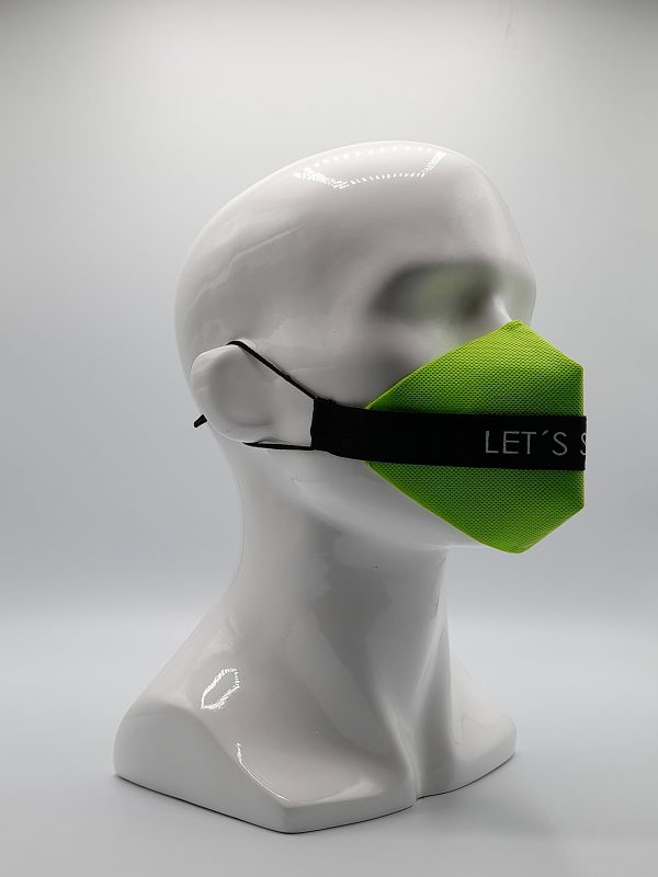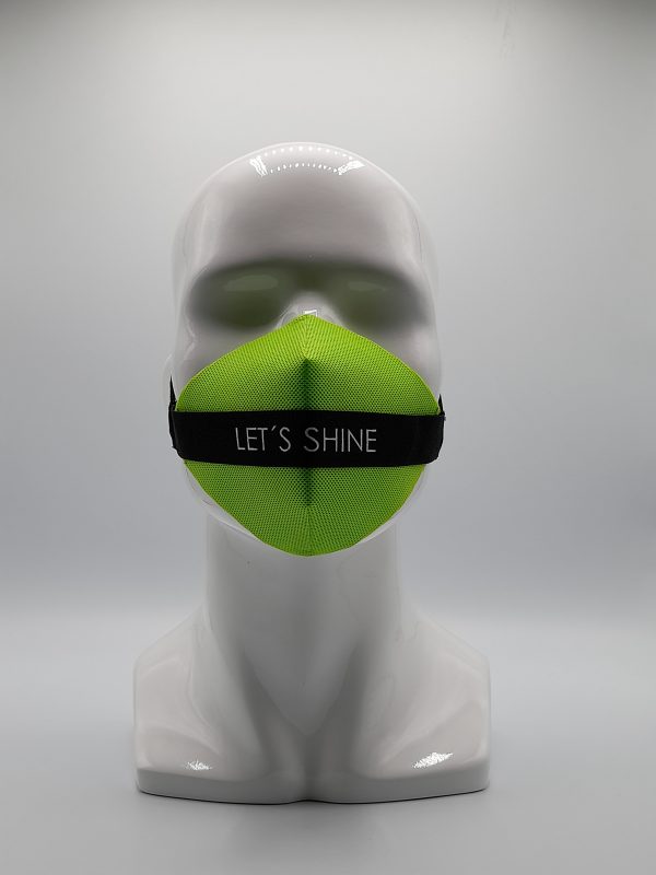 Mascarilla de Diseño cinta Negra LET´S Shine, sujeción de orejas con elástico quirúrgico. Protector intercambiable de TNT 100 gr. doble capa color Verde Claro.